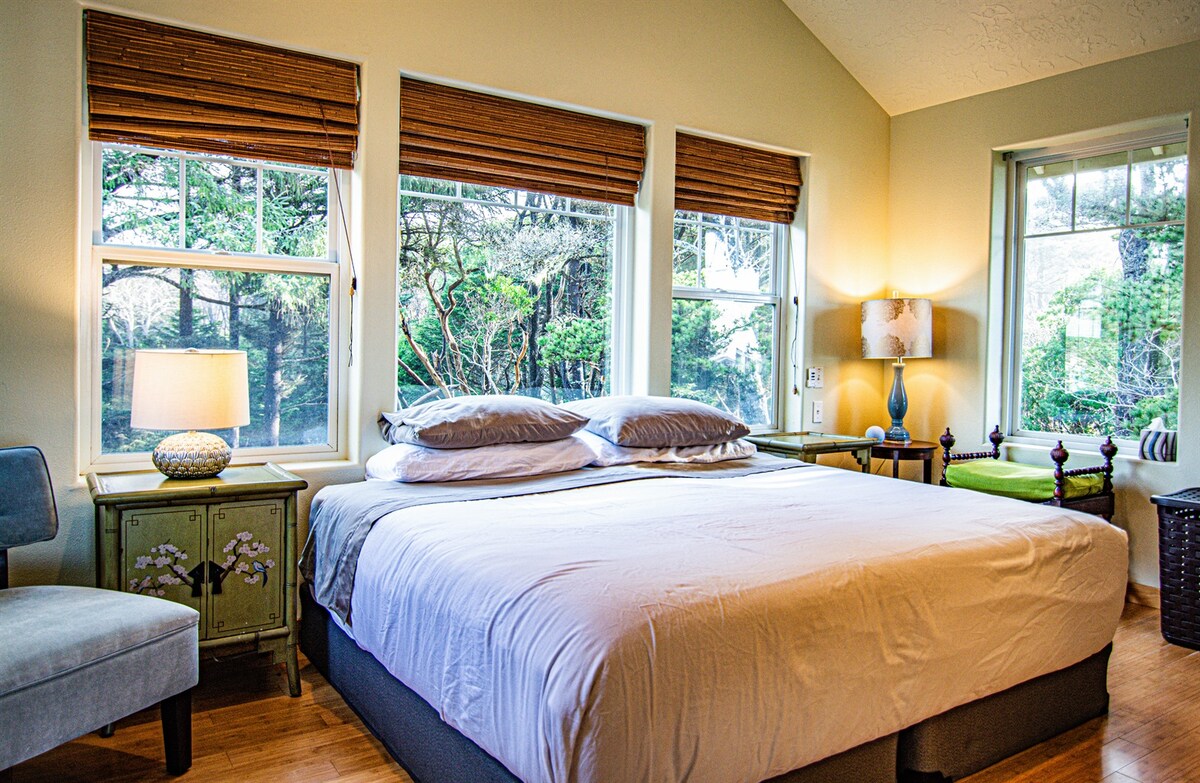 Ubicado en un bosque en la ladera de una colina, este refugio ofrece vistas al mar, al río y a la montaña desde todas las habitaciones. A diez minutos a pie de la playa, el río, cafeterías, restaurantes y supermercado. Lo suficientemente lejos de la 101 para que todo lo que oigas sean olas rompiendo y pájaros trinando. La ruta de senderismo justo detrás de la casa conduce al famoso sendero 804, al sendero de la costa de Oregón, al sendero de Amanda y al cabo Perpetua.