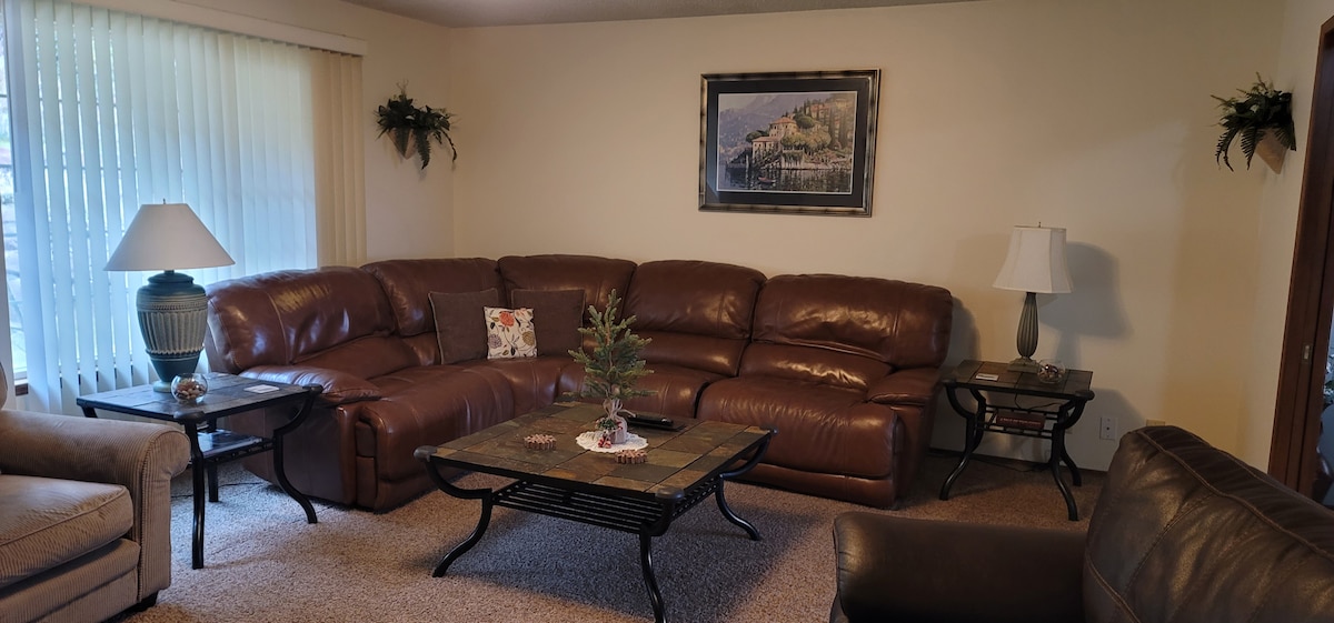 Welcome to your home away from home! This large, yet cozy home has been lovingly updated throughout with touches you’ll love. 4 private bedrooms, 3 King beds and 6 single beds, 2 living rooms, a game room, large TVs throughout, and a bonus shed furnished for gaming & fun! The backyard oasis will complete your picturesque stay. Centrally located, just ten blocks from the hospital and two blocks from a summer public pool & winter sledding hills. Family, friends, and furry friends are welcome!