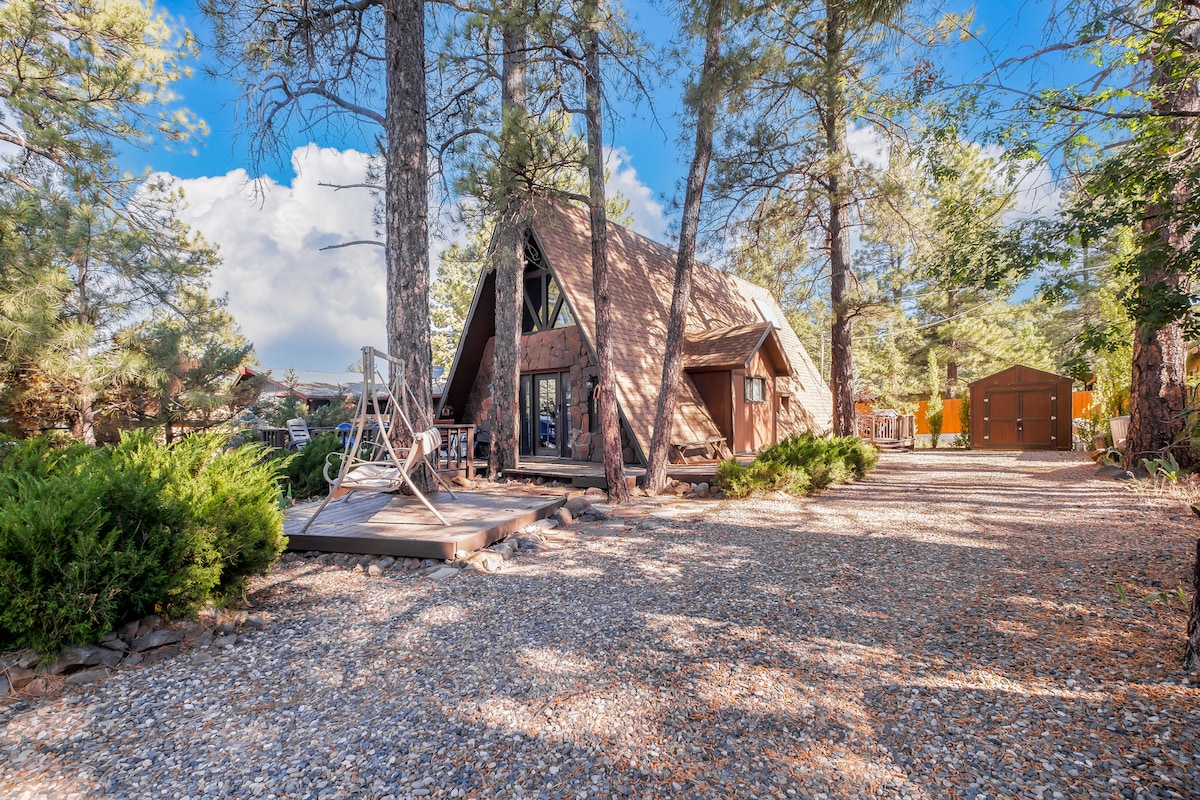 @AFrameFlagstaff es una pequeña casa alpina en 1,5 acres en el Bosque Nacional. Aparece en la campaña mundial de American Eagle Outfitters. Se admiten perros. Aire acondicionado. Camping glamuroso épico y observación de estrellas. A 10 minutos del centro histórico/Ruta 66. A 15 minutos de Walnut Canyon, Sunset Crater, los parques nacionales de Wupatki, NAU, AZ Snowbowl. A 30 minutos de Meteor Crater y Sedona. A 90 minutos del Gran Cañón, Horseshoe Bend, Antelope Canyon y Petrified Forest. A 2,5 horas de Monument Valley. Nuestro alojamiento «Tiny Mountain View Sauna Cabin» está cerca.