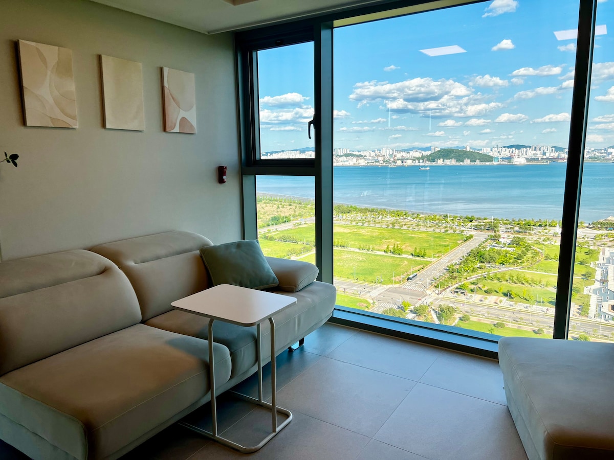 [Casa17#L] Vista al mar/Piso alto/Terraza/Alojamiento de alta calidad/Altavoz Marshall/Aparcamiento gratuito/Aeropuerto de Incheon a 20 minutos