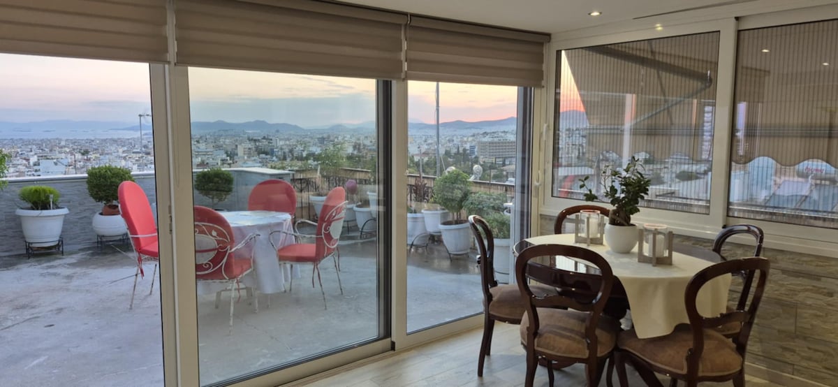 Appartment suite on the top of the city with Panoramic view of Acropolis & the top floor of Acropolis museum as well as Lycabettus & Philoppapou hill (the hill of Musses). Ideal for couples who want to explore the multifarious center of Athens without its metropolitan noise or pamper themselves with a hot bath having Parthenon view from its special window. Fully equipped & comfortable. Contact us for any questions or requests for a memorable stay of yours.