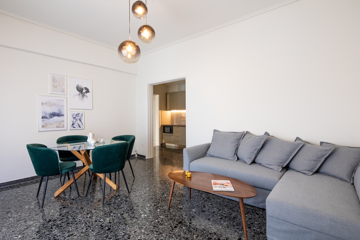 A charming apartment features a comfortable living room, serene bedroom, and a fully equipped kitchen.Relax in the spacious bathroom after a day of exploration. Ideally located, it's just a short ride to both Athens historic center and beautiful beaches. Enjoy nearby amenities:supermarkets, cafe, bakeries, restaurants, shops, and parks. Perfect for couples, families, or travelers.This apartment combines comfort,convinience and local charm. We can’t wait to host you!