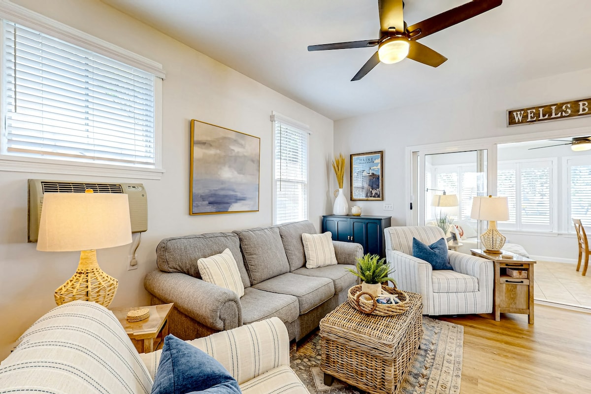 Lo mejor de ambos mundos: ¡cerca del centro y de la playa, pero también privado y tranquilo! Esta elegante casa en un barrio privado en la hermosa Ogunquit se encuentra a menos de 1 milla de la playa principal y a 1/2 milla del centro de la ciudad. Las comodidades incluyen un jacuzzi interior y sauna, zonas de estar de concepto abierto y un porche cerrado. Cuatro dormitorios, 3 baños más un sofá cama. Otras características incluyen cocina completa, suelos de madera, lavadora y secadora, patio con parrilla de gas, garaje, espacio en el patio y aire acondicionado central.