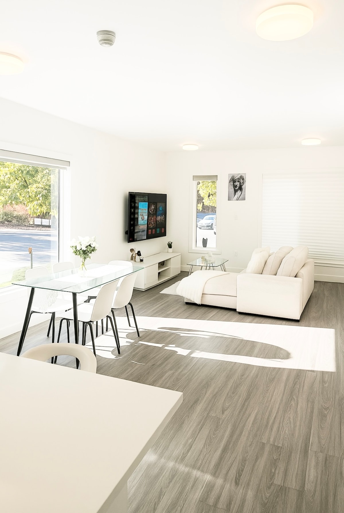 Clean Open Concept, Sun-Filled 2 Bedroom main floor home with PARKING; Can sleep up to 4 people. Featuring simple modern décor, queen size beds, big beautiful windows with room darkening curtains, closet storage. Dedicated office desks in bedrooms Full kitchen, with oil, seasoning spices, toaster, hot water kettle, Keurig Coffee Machine and complimentary coffee+tea. Clean bathroom with shampoo+conditioner+body wash+lotion SMART TV 60” Fast internet Wifi Check-In: 3PM Check-Out: 11AM