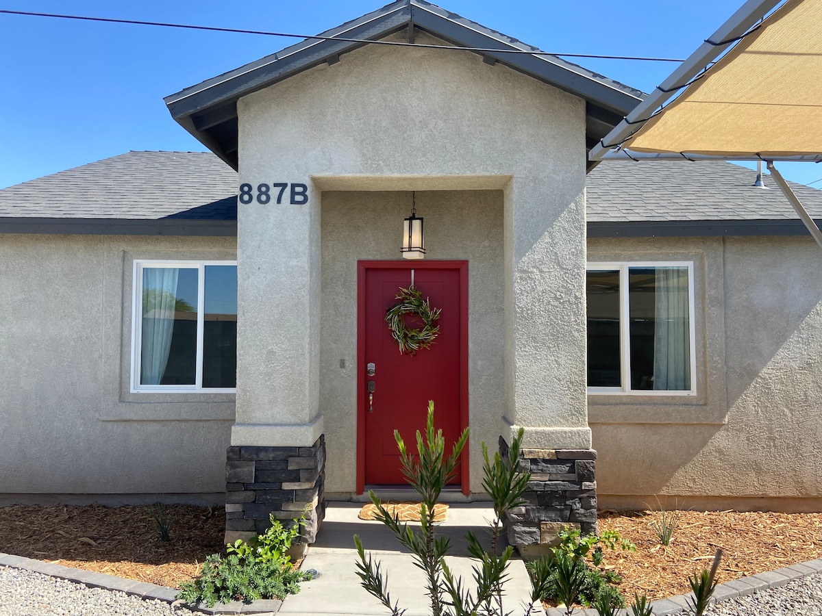 Casa de huéspedes luminosa y totalmente separada en la parte trasera de una casa con entrada independiente, ideal para dos. Limpio, moderno y cuidadosamente equipado, este espacio ofrece privacidad y comodidad con lavadora y secadora en la unidad, aire acondicionado y una cocina pequeña. Fácil acceso a los elementos esenciales locales: a 5 minutos del Hospital Onvida y Sprouts, y a solo minutos de cafeterías, restaurantes y tiendas del barrio.