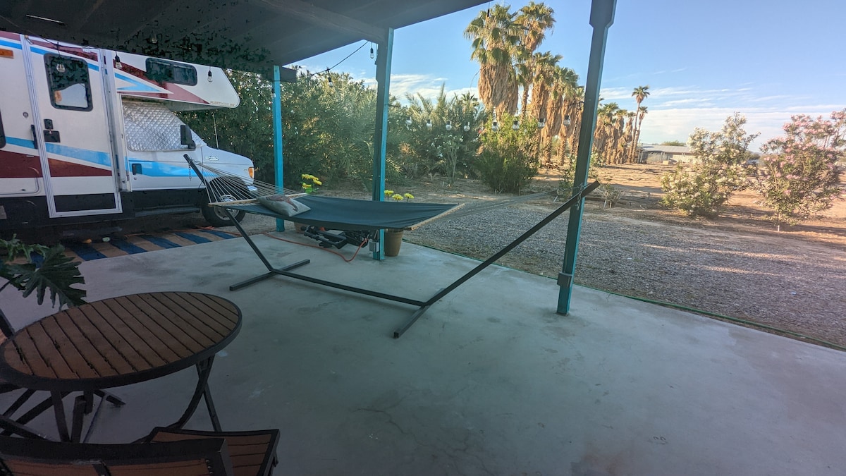 Un refugio en miniatura tipo apartamento con mini-split residencial. Las palmeras rodean este pequeño pedazo de paraíso en el desierto. El JAMM Wagon (casa rodante de clase C remodelada) tiene todos los elementos esenciales: baño con ducha, cocina, TV, calefacción/aire acondicionado, armario, mesa de comedor y 1-2 camas (1 loft y 1 individual) para elegir. Además, el espacio cubierto del patio para que lo uses. Comprueba las horas, pero estás a pocos pasos del famoso "Jac's Whistle Stop Cafe" o burritos de Gonzo 's. Disfruta contemplando las estrellas o tomando el sol durante todo el año.