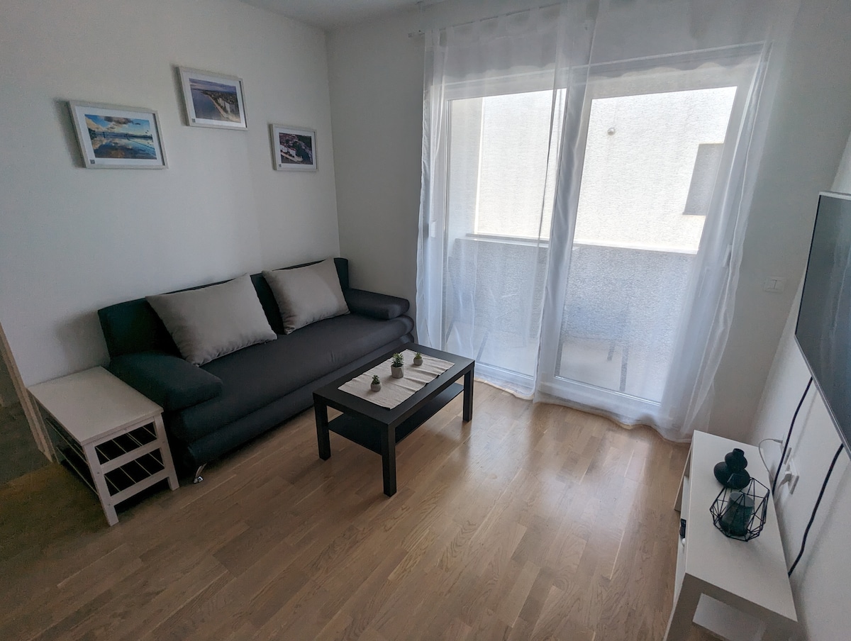 El apartamento tiene 44 m2. Se encuentra en un edificio de nueva construcción. Consta de un amplio salón con cocina, baño y 1 dormitorio. El apartamento está totalmente equipado (lavadora y lavavajillas, nevera y congelador) y para una estancia más larga de los huéspedes. También hay conexión a Internet wifi gratuita y aire acondicionado. Es ideal para dos personas. Cerca de la playa. Cerca del centro de la ciudad, de las instalaciones culturales y recreativas. El apartamento es cómodo, la distribución del apartamento es práctica. Puede disfrutar de su privacidad.