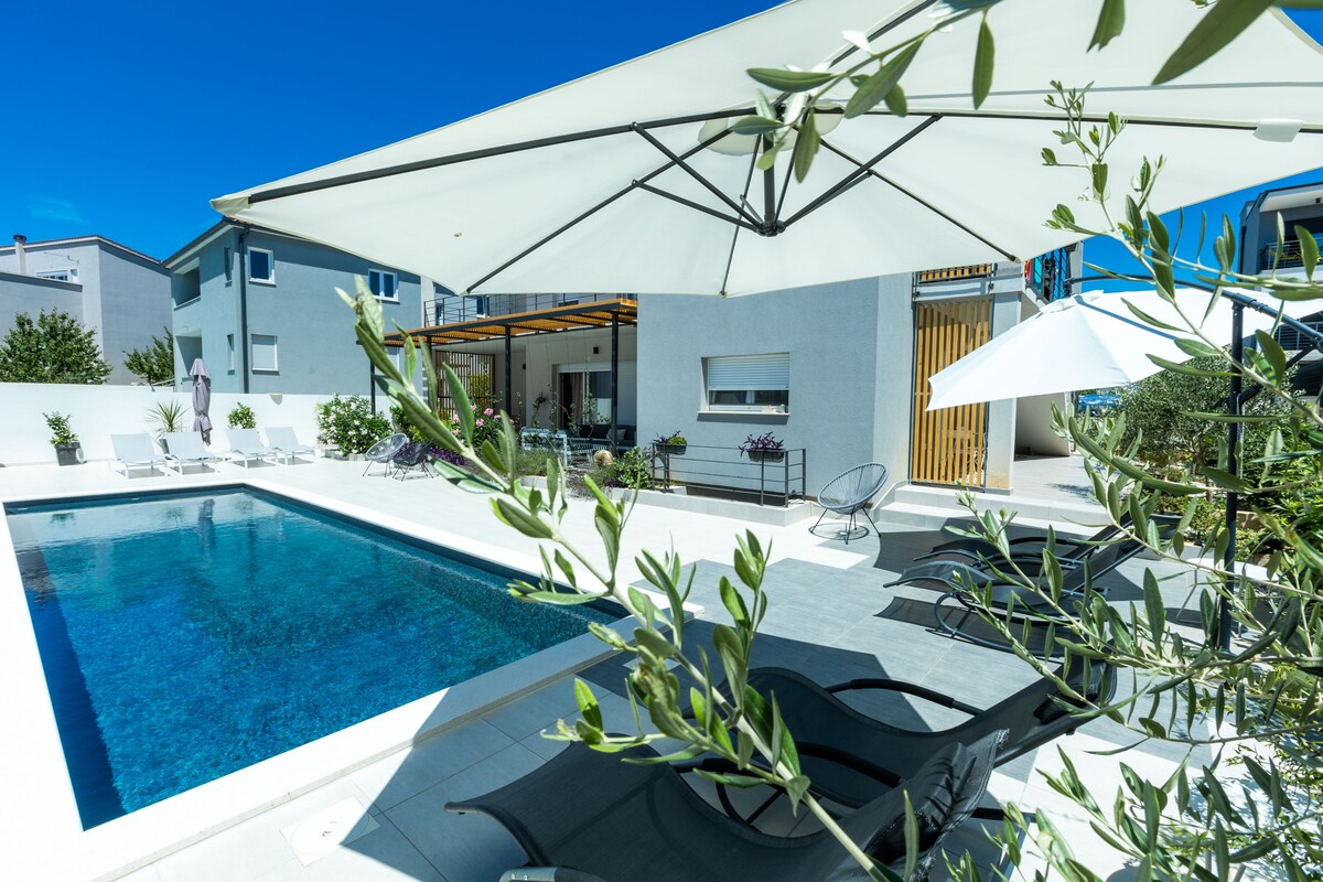 ¡Te damos la bienvenida a tu escapada tranquila a Zadar! Este departamento luminoso y cómodo es perfecto para parejas y grupos pequeños que aprecian la privacidad, la tranquilidad y el fácil acceso a las atracciones locales. Disfruta de nuestra piscina de temporada (mayo a septiembre) y del cargador de vehículos eléctricos en el lugar, una comodidad poco común en la zona.