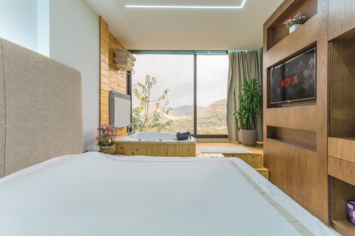 Un acogedor y moderno apartamento de 1 dormitorio en el corazón de Kfardebian, perfecto para una escapada relajante a la montaña. Disfruta de un jacuzzi privado en la habitación, ducha de lluvia, cocina totalmente equipada y un cómodo espacio para vivir. Registro de entrada con cerradura inteligente y estacionamiento incluidos. La madera para la chimenea está disponible por un cargo adicional, lo que garantiza una estancia cálida y acogedora.