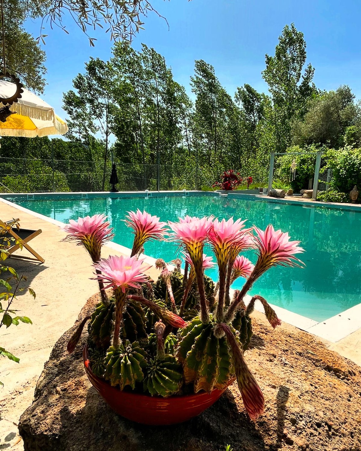 En este alojamiento se respira tranquilidad: ¡relájate con toda la familia o amigos! El alojamiento con su porche y barbacoa es independiente y privado. Está en una parcela 5000m2, con aparcamiento, piscina, canasta de baloncesto, Wi-Fi, ... esta zona es compartida con el dueño y/o con otros huéspedes. Hay varias zonas de baño en el río Cabriel, también hay varios manantiales (todos de aguas termales, 27grados) con sus balsas naturales, como se ve en las fotos.