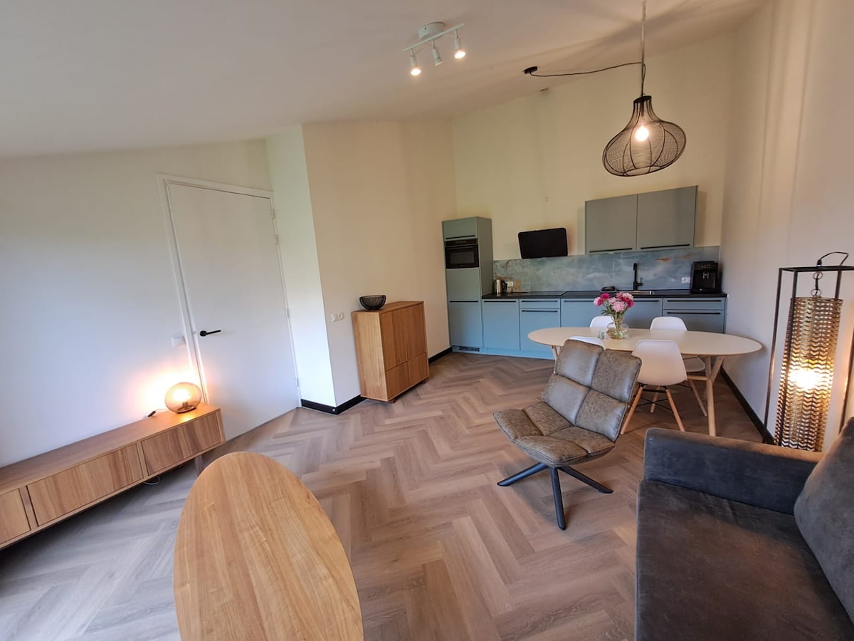 Luminoso y espacioso, con más de 50 m2, hay suficiente espacio para una estancia de lujo para 2 personas. La cocina, la habitación, el baño, el aseo separado y el dormitorio son todos nuevos y lujosos. Hemos decorado el estudio independiente con materiales de alta calidad. Como le gustaría que fuera su propia casa. Aunque no servimos desayuno, siempre proporcionamos una nevera llena de algunas bebidas, mantequilla, yogur/queso quark, huevos, mermelada a la llegada. También hay cereales, aceite/vinagre, azúcar, café y té.