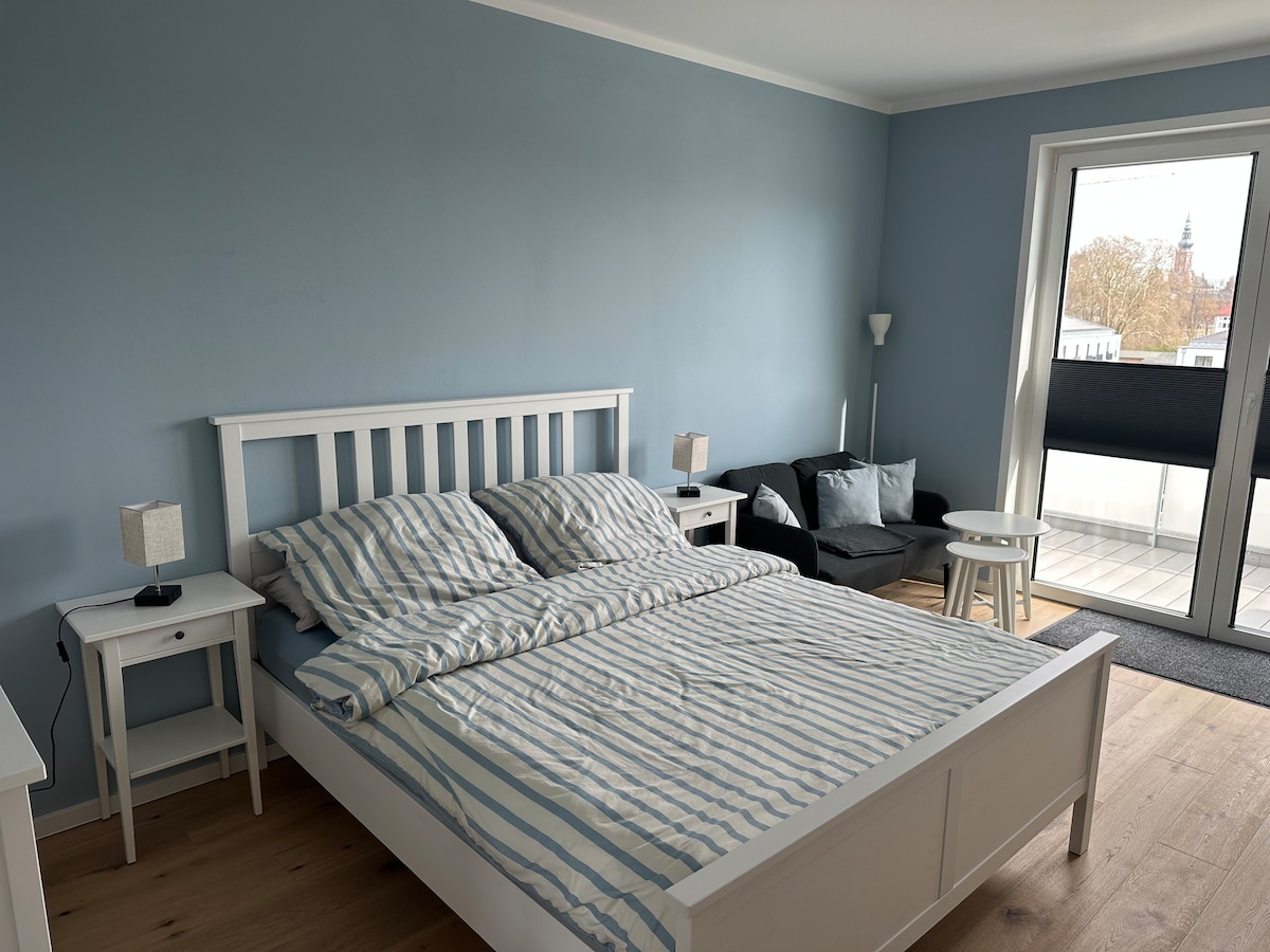 Se puede alquilar un hermoso condominio construido en 2010, en el último piso con una enorme azotea desde donde se pueden ver las torres de las iglesias de Greifswald. El apartamento está a sólo 8 minutos a pie de la estación de tren, de la universidad o de la plaza del mercado, muy céntrico, pero tranquilo, en una calle lateral. Vives completamente solo en el tejado del edificio, como en un ático. El ascensor baja al piso de abajo. Hay una lavandería compartida disponible.