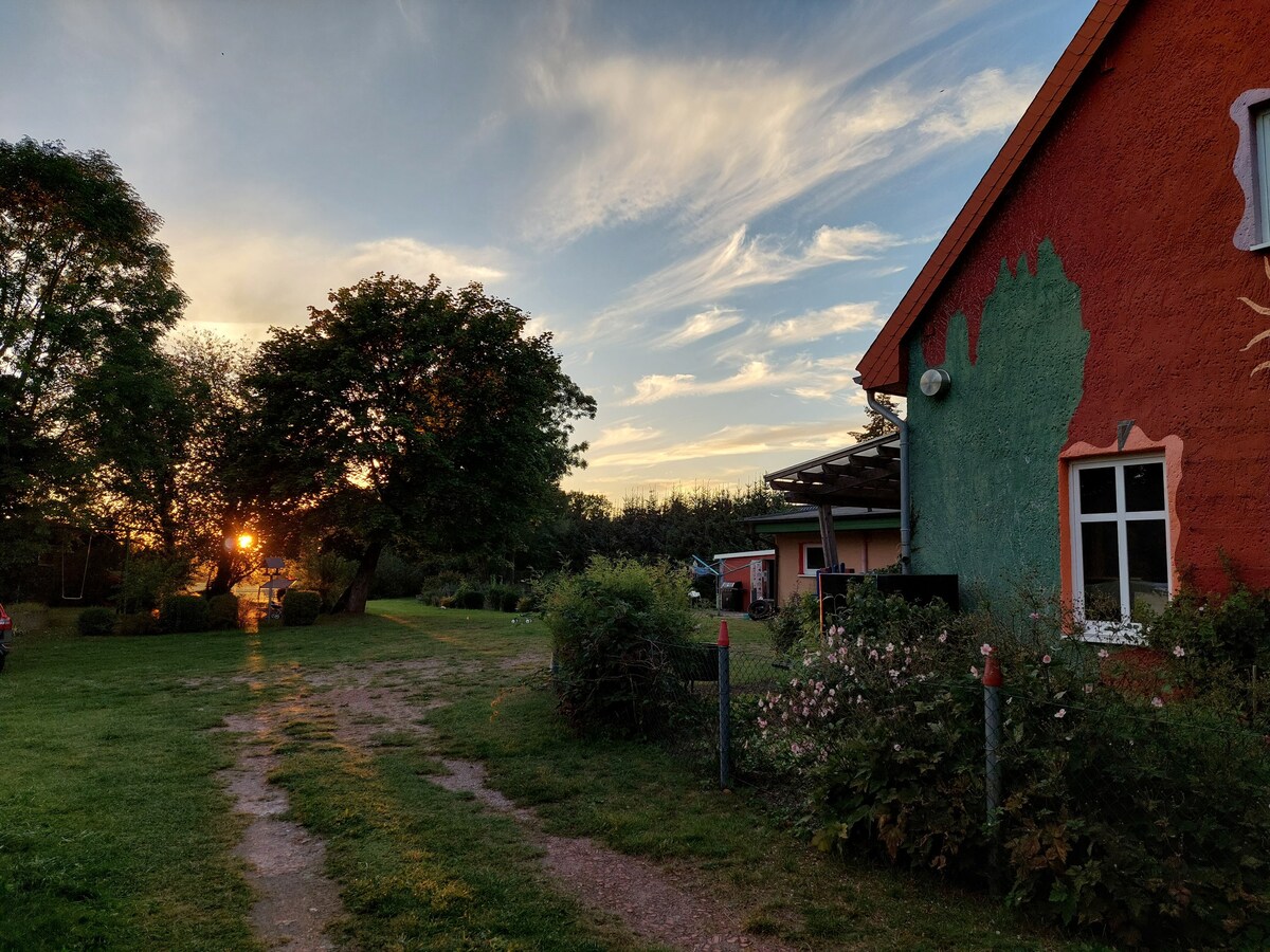 En Schweinrich, en el Dranser, sin lanchas, se encuentra la romántica casa de vacaciones "Landlust" con un jardín grande idílico, a solo 100 metros de la zona de baño. Hay una casa flotante con embarcadero propio. Se pueden alquilar canoas, kayaks y botes de vela (se requieren habilidades de navegación). Además, el apartamento “Seensucht” en la casa también se puede reservar para familias más grandes https://www.airbnb.de/rooms/16298528 El sauna del jardín está disponible para los huéspedes durante la temporada fresca.