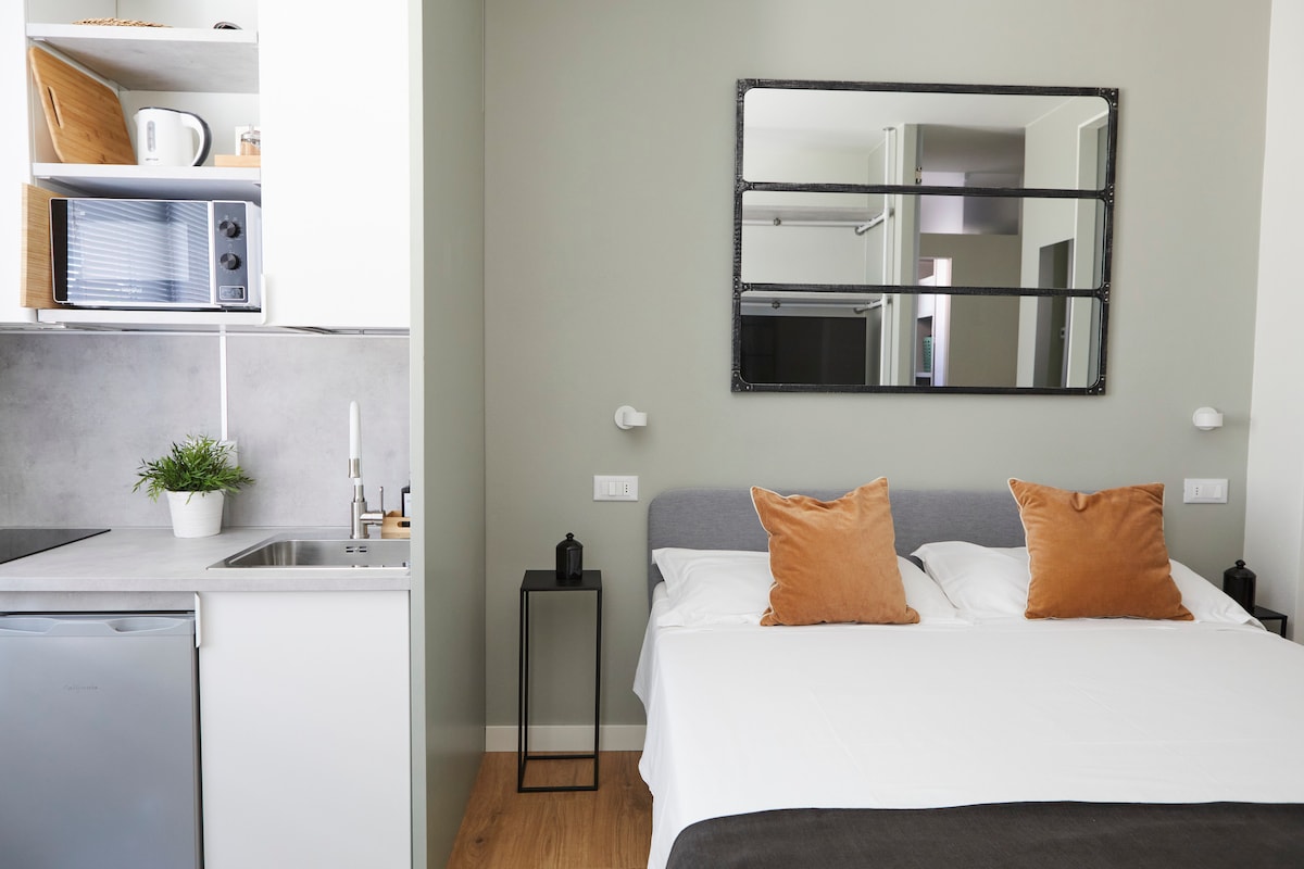 Olive Garden si trova in un quartiere centralissimo, in una zona ricca di bar e ristoranti, a pochi passi dal Duomo e dal cuore dello shopping. Avrete pace e silenzio, perché il nostro monolocale di 30 mq (con letto e tavolo a scomparsa) è in un tipico palazzo milanese al 2° piano senza ascensore. Luminoso, con uno splendido e riservato terrazzo di 20 mq, immerso nel verde, coperto da tettoia automatizzata e riscaldato da lampada a calore. Curato nei minimi dettagli con arredo di design