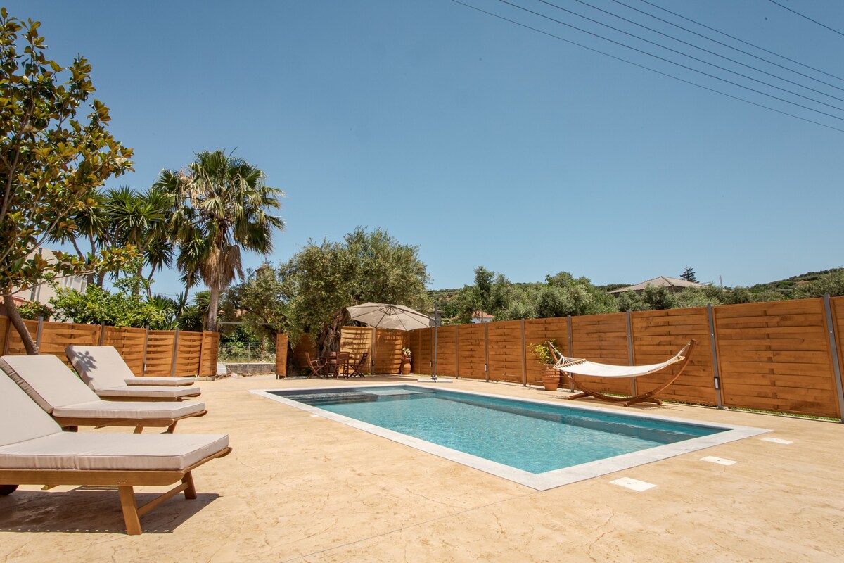 Hermosa villa es un encantador refugio de 4 dormitorios con una piscina privada y hermosos jardines, ubicado en el tranquilo pueblo de Zounaki. A solo 400 metros, hay una cervecería local con un restaurante tradicional. Hay algunas tabernas, restaurantes y un supermercado a unos 6 km de la villa. La playa de guijarros de Maleme también está a 6 km, ideal para un día relajante junto al mar. El pintoresco casco antiguo de Chania está a 25 km, y te recomendamos alquilar un auto para explorar la zona cómodamente.